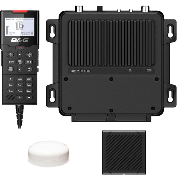 System comes with NRS-2 VHF Blackbox module with Class B AIS built in, GPS500 GPS Antenna, one H100 wired handset and one SP100 speaker.