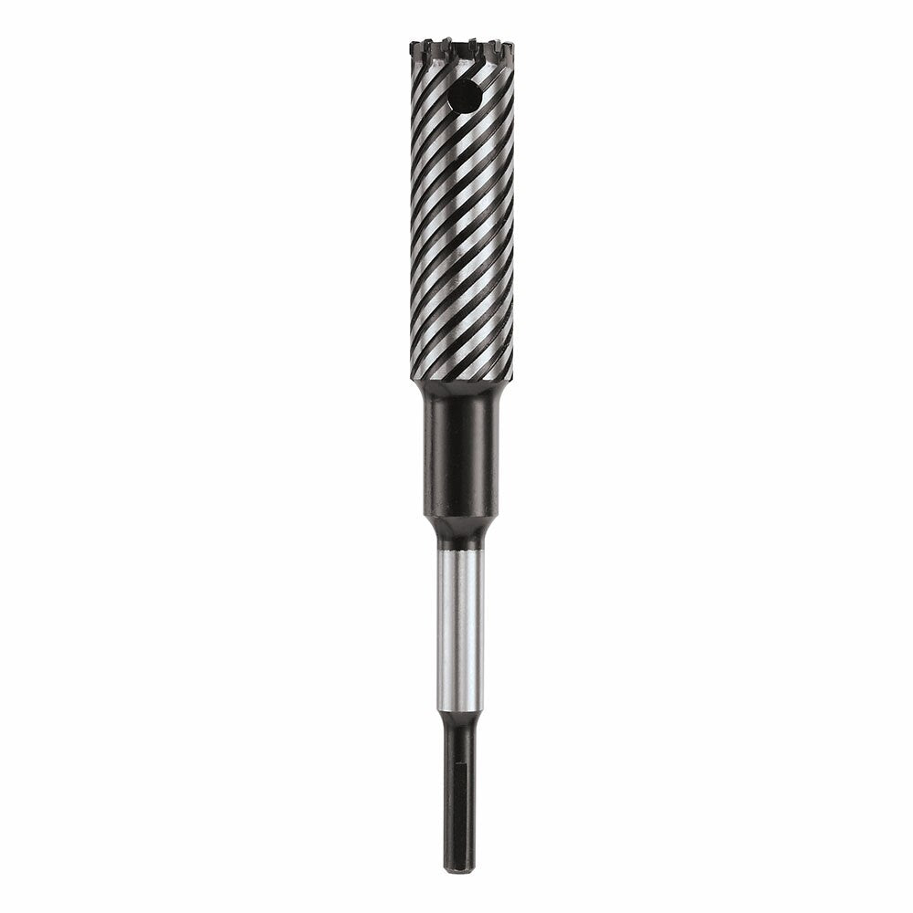 Straight shank fits standard three-jaw chuck drills and hammer drills. Bit is 36% faster and lasts twice as long as competitive cutters. For use in rotation mode only. Not to be used in hammer mode.