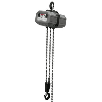 JET® SSC Series electric hoists combines safety and durability to operate in commercial and industrial applications. All models incorporate a slip clutch overload protection mechanism that prevents the hoist from lifting damaging loads above its rated capacity. They are available in single or three phase configurations to suit your electrical needs. Single phase models have a thermal overload protection design that keeps the hoist from overheating, while the three phase models feature a reverse phase relay that protects the hoist from incorrect wiring. The industry proven DC electro-magnetic brake increases safety by holding the load even when power is interrupted. The maintenance-free gear train incorporates a sealed oil bath, for reliability and durability. The JET® SSC series electric hoist is available in ½ ton to 5 ton capacities with standard lifts of 10, 15, and 20 feet (custom lifts available).