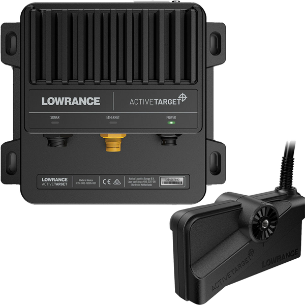 Lowrance ActiveTarget Sonar SystemIncludes Processor, Transducer, Mounts and CablingWatch high-resolution images of fish movements -- tracking them as they swim in and around cover with ActiveTarget Live Sonar. When you see how fish are located near structure and watch them respond to your lure, you will know if your current technique is working, or if it's time to make an adjustment -- information that is harder to get from traditional sonar or structure imaging.Track fish and your presentation with high-resolution views in front or below your boat, or use the Scout mode to see an ultra-wide, overhead view of structure and fish activity in front of your boat, perfect for finding bait balls and big schools of fish.ActiveTarget is compatible with Lowrance HDS LIVE, HDS Carbon and Elite FS fishfinder/chartplotters.