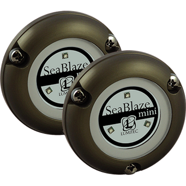 Lumitec SeaBlaze Mini Underwater Light - PairSurface Mount, with Blue LightThe newest member of the SeaBlaze family, the diminutive SeaBlaze Mini packs a surprising punch! SeaBlaze Mini leverages many of the technologies utilized in the world's most popular underwater light, the SeaBlaze3, to ensure years of trouble free service. With an actual MEASURED output of more than 700 lumens, there is simply no better value in underwater lighting. Perfect for smaller trailer boats, skiffs, or dinghies. Sold as a pair.Because there is no external driver, there are fewer connections and devices to fail and less equiment to mount.
