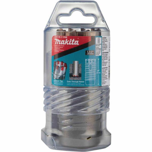 Get the right accessory for use with your rotary hammer. Makita has a full line of bits, including rebar cutter drill bits engineered to shred through concrete-embedded rebar. The Makita SDS-PLUS Rebar Cutter Head is part of a two-piece rebar cutter bit system which allows users to replace worn cutter heads for use on compatible Makita rebar cutter shank adapters (sold separately). The Rebar Cutter Head is engineered for faster drilling and precise hole placement, and each has an alternating cutter tooth geometry to increase cutting efficiency. The dust evacuation zones and large flute design rapidly removes debris from the hole, and the core extraction port allows for easy removal of waste material. Each bit features high-quality European tungsten carbide teeth for longer bit life.