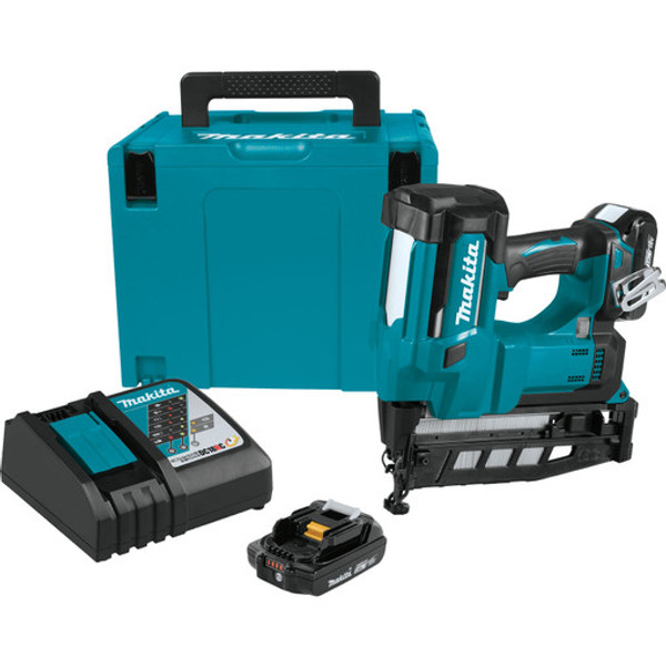 The Makita 18V LXT® Lithium-Ion cordless 2-1/2 In. straight finish nailer, 16 Ga. (model XNB02RJ) is an ideal solution for trim work, baseboard and crown molding installation, flooring and other woodworking applications. The nailer is compact and powerful, and drives standard 16 gauge straight finish nails from 1 In. to 2-1/2 In. in length with a magazine capacity of up to 110 nails. Using an 18V LXT® 5.0 Ah battery, it will drive up to 1,000 finish nails on a single charge. Additional features include an anti-dry fire mechanism that is engineered to help prevent driving blanks and damage to work surface. It has a 2-mode selector switch, trigger lock button, and tool-less depth adjustment for precise flush and countersink finish.