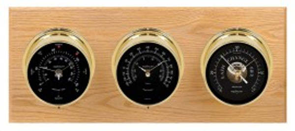 • Maximum Montauk 2S Three-Instrument Weather Station with oak panel, brass case, black dial
