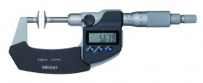 p>When you need to measure the root tangent lengths of spur and helical gears, the Mitutoyo 369-411 Series 369 Digimatic Disk Micrometer with Non-Rotating Spindle has you covered. The non-rotating spindle prevents torque on workpieces, and this model is equipped for SPC data output to help streamline your work. The ratchet stop supplies constant force, and the plastic case helps keep the micrometer safe when it's not in use.