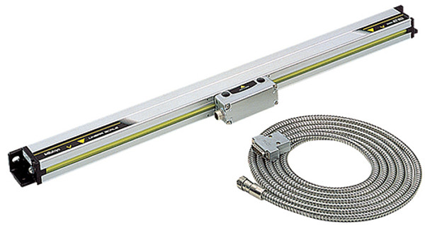 Product Description 539-152-30 Mitutoyo AT103 Standard Type Linear Scale: 0-220"/5500mm The Mitutoyo 539-152-30 AT103 Linear Scale - Standard Type has the following specifications: Effective Range: 0-220"/5500mm Model: AT103-5500 Signal Cable Length: 15m Resolution: .001" to .000005" / 0.01 to 0.0001mm Accuracy (20° C): Effective range 100 to 3000: (5+5L0/1000) microns Effective range 3250 to 6000: (5+8L0/1000) microns Output signal: Two 90° Phase-Shifted Sinusoidal Signals Maximum Response Speed: 120m/min (50m/min when the effective measuring length is 3250 to 6000mm) Signal Output Pitch: 20 microns Scale Reference Point: Output in 50mm pitch Protection Level: IP53 Operating Temperature: 0-45° C Features: Enhanced vibration-resistance and durability. The innovative rubber lips keep out contaminants. An armored signal cable is used to connect the scale unit to the DRO counter for safe operation in harsh shop environments. The signal cable outlet can be positioned on either side of the detector head, allowing the signal cable to be connected from either direction. A wide variety of measuring ranges are available in this standard type scale unit. Connectable to the KA counter, KLD counter, or PSU-200.