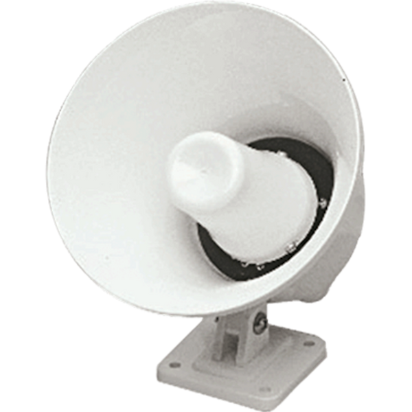 Clear, distortion free, waterproof deck horns are ideal for shipboard paging, hailing, fog horn and alarm systems. High impact plastic construction and assembled with stainless steel hardware. 8 Ohm.