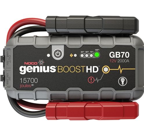 The portable lithium-ion battery jump starter pack that delivers 2,000-amps for jump starting a dead battery in seconds. It features a patented safety technology that provides spark-proof connections and reverse polarity protection making safe and easy for anyone to use. It's a powerful battery booster that doubles as a portable power source for recharging USB devices, like a smartphone, tablet and more, or powering 12-volt devices, like a tire inflator, power inverter and much more. Designed for a car, boat, RV, truck and more with gas engines up to 8 liters, and diesel engines up to 6 liters.