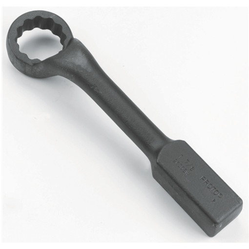•Black oxide finish. •Large striking surface for surer blow contact and more efficient transmittal of force to fastener. •Short handle permits use in close quarters. •Box opening designed to remain on fastener when wrench is struck. •For use where extreme force is necessary to loosen or set large fasteners. •Heavy box walls provide greater torque transmission. •Offset handle clears obstructions.