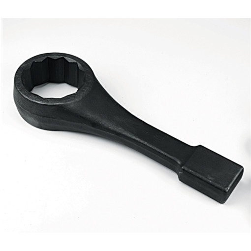 •Non-reflective ProtoBlack™ finish for use where non-plated products are required. •12 point box end allows for fine indexing, helping improve speed and access. •Fits most 4, 6 and 12 point fasteners. •Designed for heavy use in close quarters where hammer or sledge is required to loosen frozen nuts or set large fasteners. •High strength rectangular design withstands heavy sledging. •Box opening designed to remain in place on fastener when wrench is struck. •Heavy box walls provide greater transmission of torque to fastener. •Straighter handle design than striking wrenches resists springing, nut turns easier.