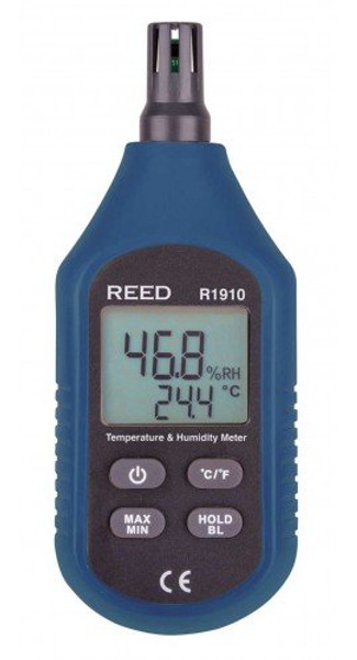 This compact thermo-hygrometer measures temperature and relative humidity. The R1910 features Data Hold and Min/Max functions and is designed for one-handed operation.