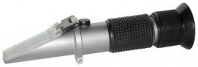 This brix refractometer shows the concentration (percentage) of sucrose in 2 to 3 drops of a sample. The R9500 is used to measure sugar concentration in fruit juices and has been calibrated to the sucrose content contained in 100g of cane sugar.