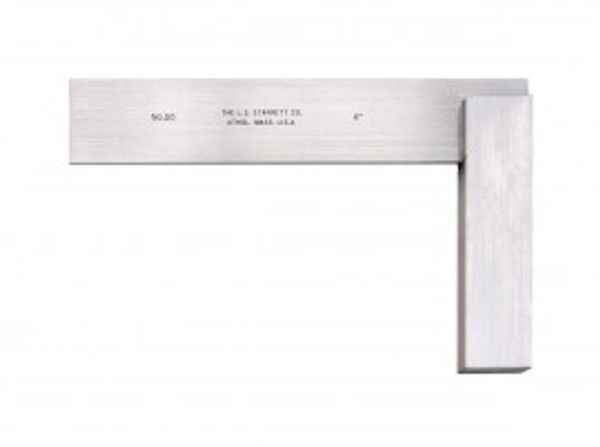 The Starrett 20-6 Master Precision L Square can be used to measure squareness with an accuracy of 0.001" (0.0025 mm) every 6" (150 mm). Hardened tool steel construction a durable design, and the beam and blade are hardened, ground and lapped for optimal parallelism and straightness.