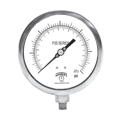 Winters, P3S6220, P3S 8.5" Dial, 0/3,000 PSI/kPa, 1/2" NPT Bottom Brass Pressure Gauge