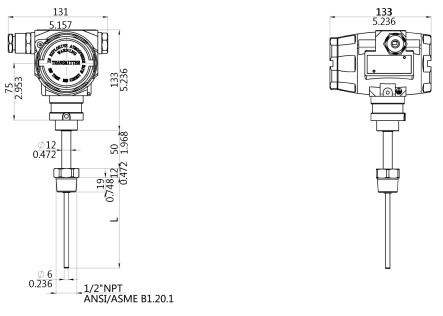 Winters, TY52300R, WinSMART TY52 SMART Explosion Proof Temperature Transmitter, Modbus RS485 Output, 300mm (12") Insertion Length